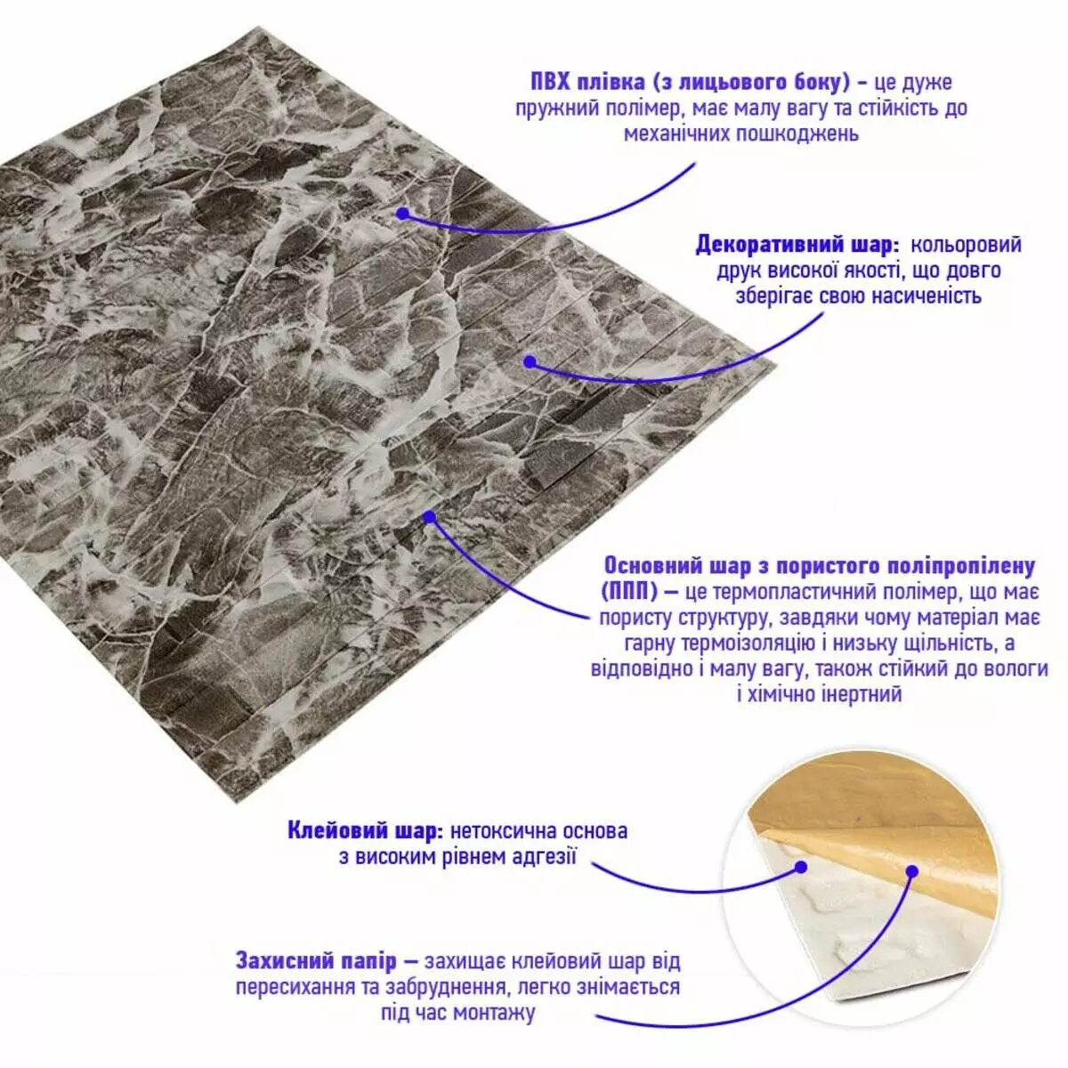 - Легкість монтажу: наявність клейового шару дозволяє встановити панелі без необхідності застосування додаткових матеріалів.