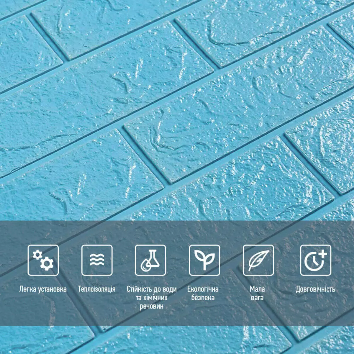 - Легкість монтажу: наявність клейового шару дозволяє встановити панелі без необхідності застосування додаткових матеріалів.