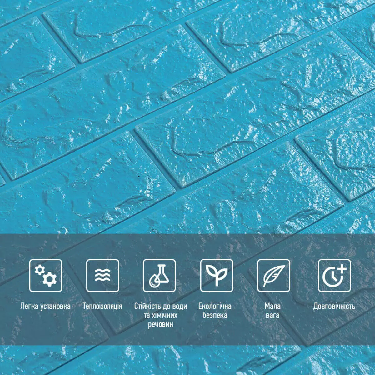 - Легкість монтажу: наявність клейового шару дозволяє встановити панелі без необхідності застосування додаткових матеріалів.