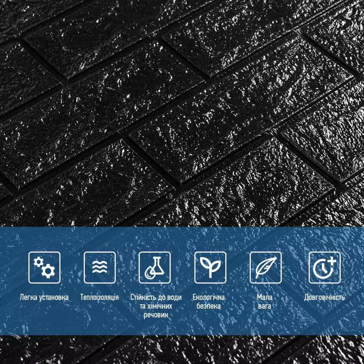 3D панель самоклеюча 700х770х3мм цегла Чорна (019-3) SW-00000584