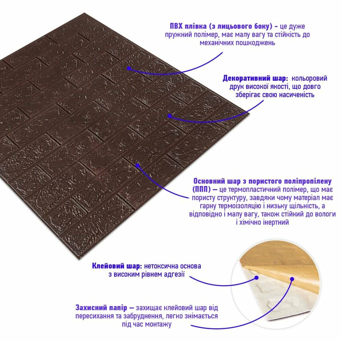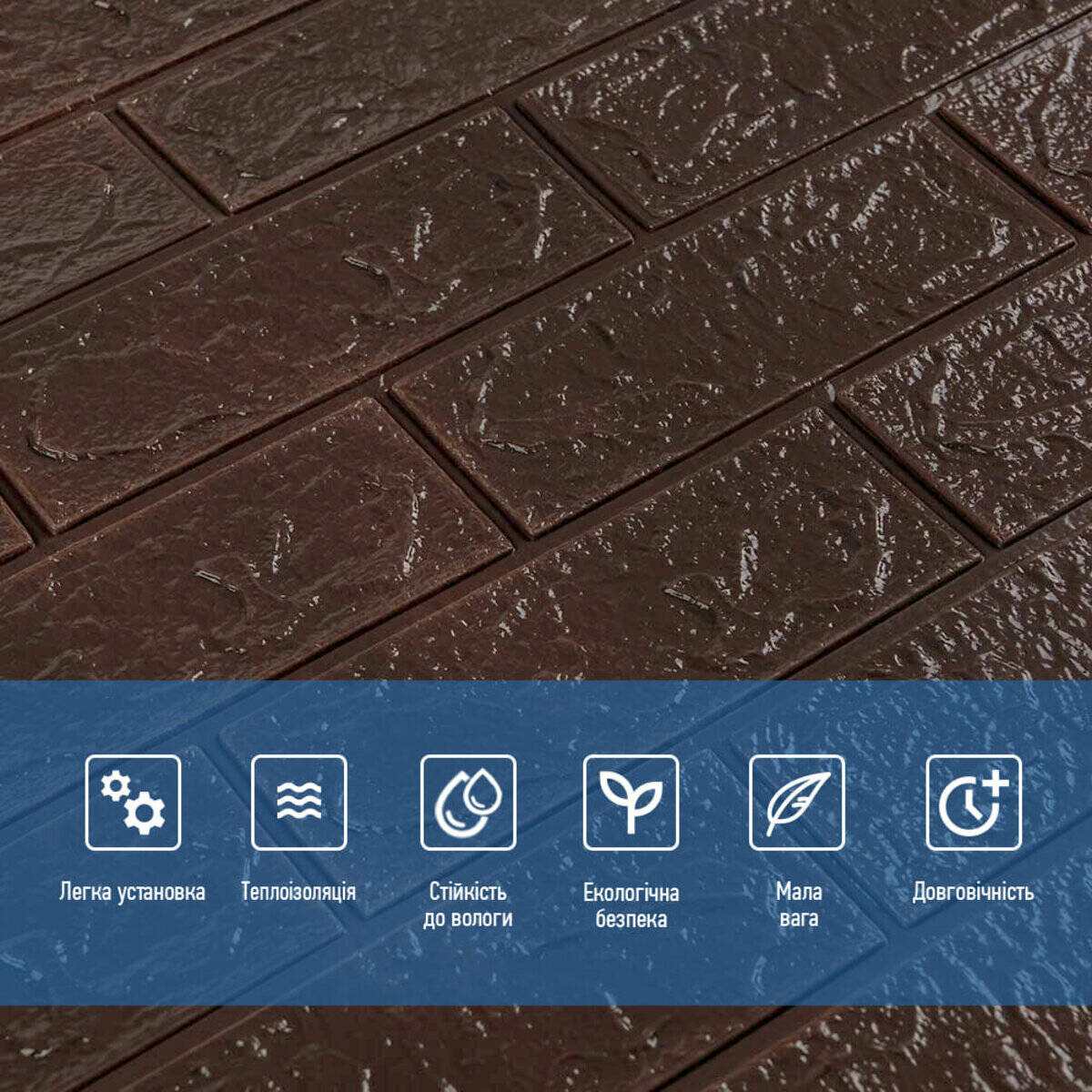 3D панель самоклеюча цегла Чорний шоколад 700х770х3мм (018-3) SW-00000543