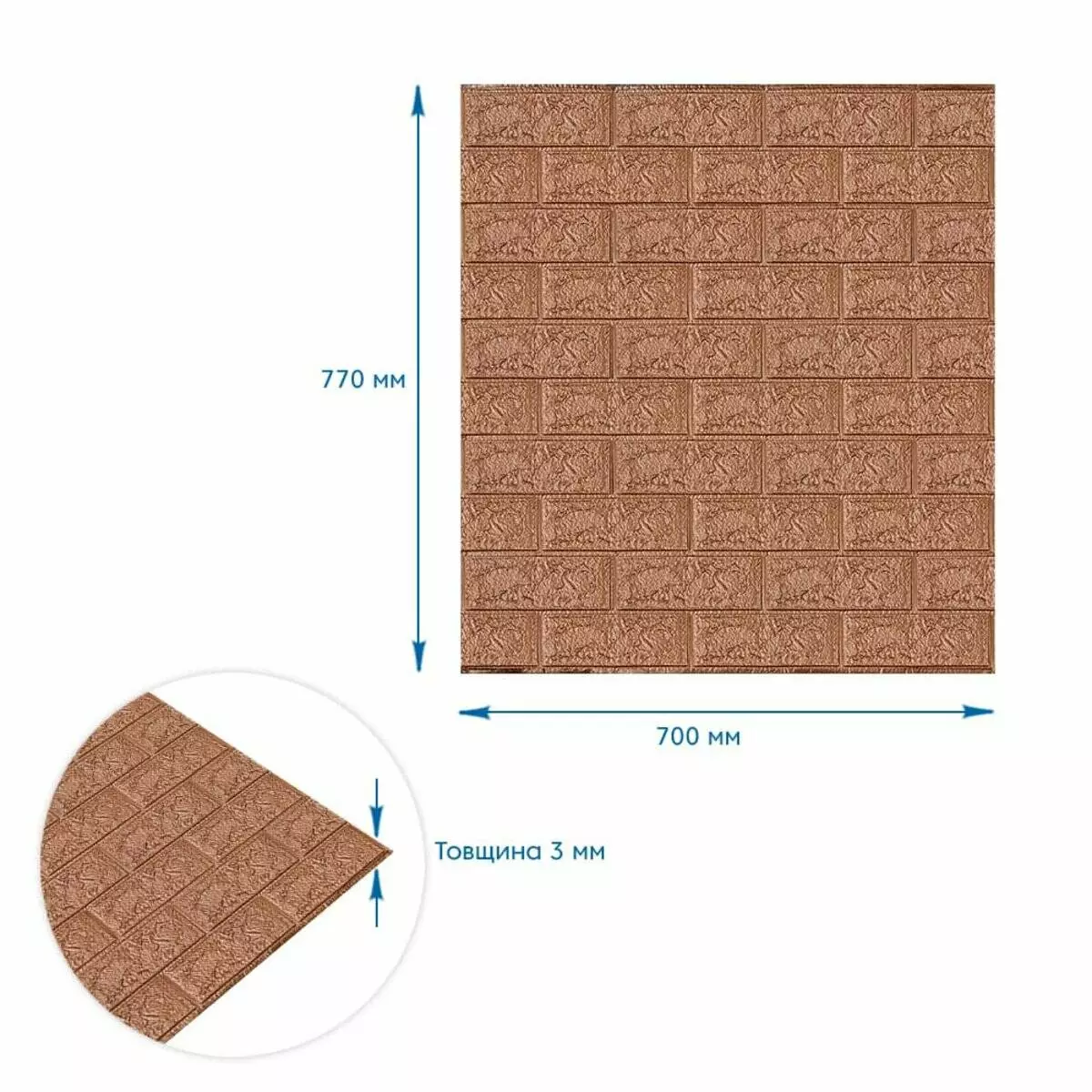 3D панель самоклеюча 700х770х5мм цегла Коричневий (020-5) SW-00000237