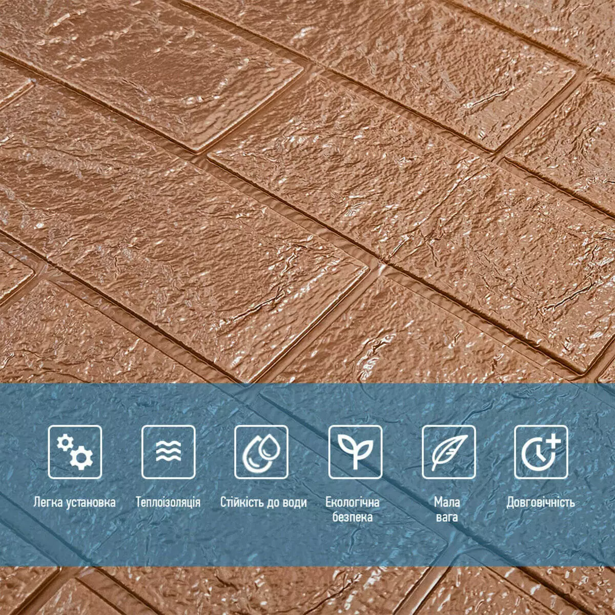 - Легкість монтажу: наявність клейового шару дозволяє встановити панелі без необхідності застосування додаткових матеріалів.