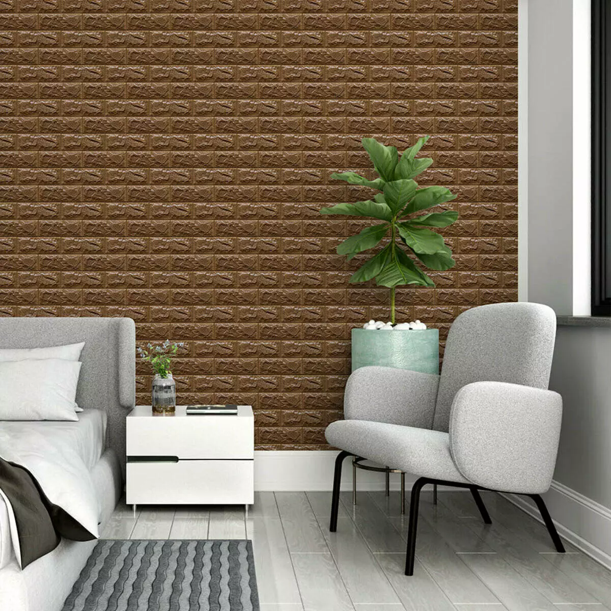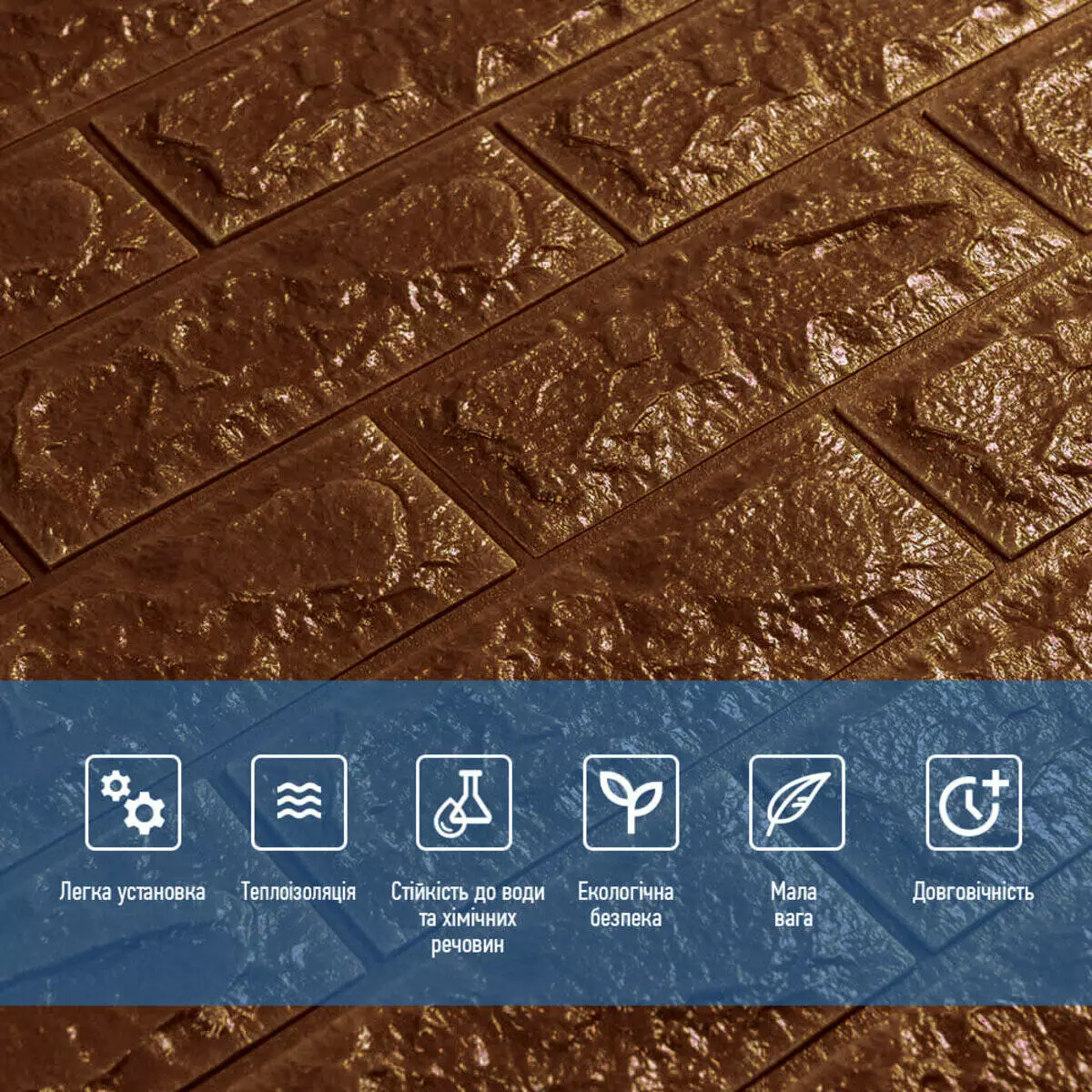 3D панелі самоклеючі – декоративне покриття для стін, виконане з легкого та міцного матеріалу – пористого поліпропілену (ППП). Основна особливість – рельєфний малюнок у вигляді цегли у широкому різноманітті кольорів та наявність клейового шару, що дозволяє встановити панелі без необхідності застосування додаткових матеріалів.