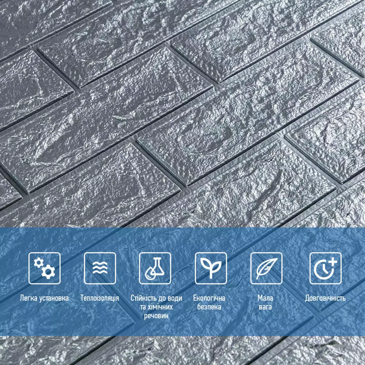 - Легкість монтажу: наявність клейового шару дозволяє встановити панелі без необхідності застосування додаткових матеріалів.