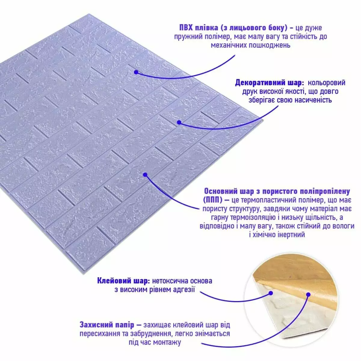 3D панель самоклеюча 700х770х5мм цегла світло - фіолетова (015-5) SW-00000083