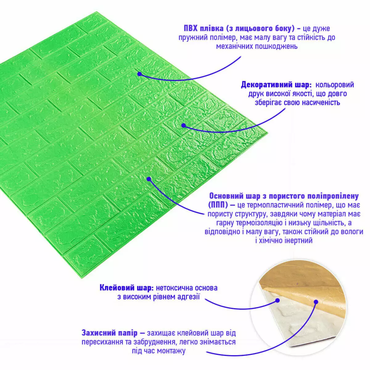 3D панель самоклеюча 700х770х3мм цегла Зелена (013-3) SW-00000639