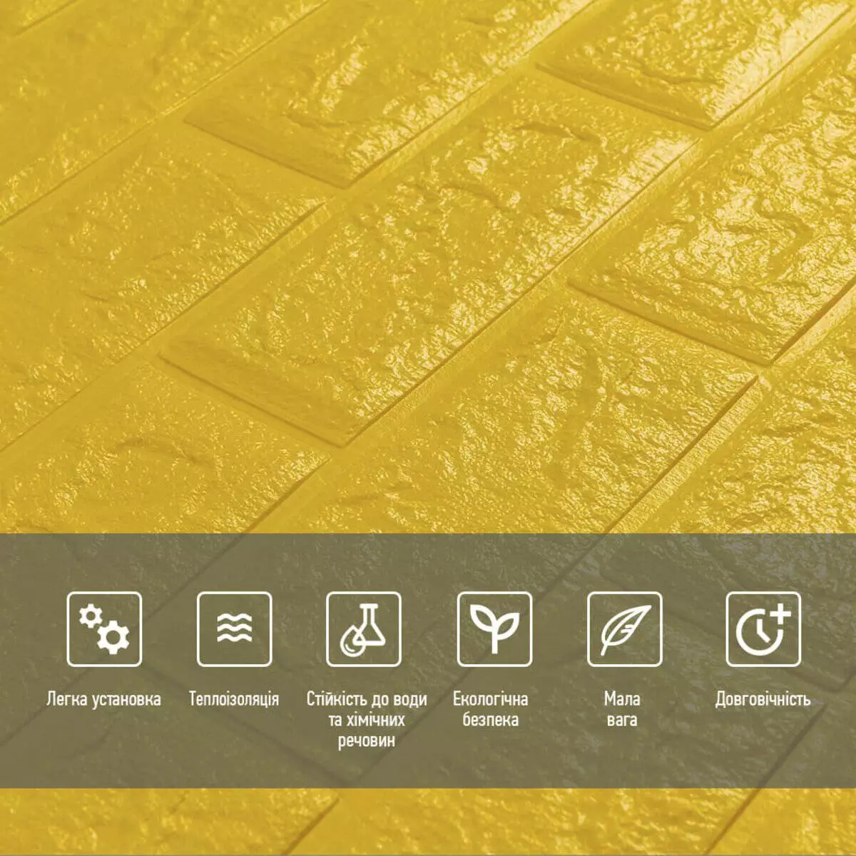 - Легкість монтажу: наявність клейового шару дозволяє встановити панелі без необхідності застосування додаткових матеріалів.