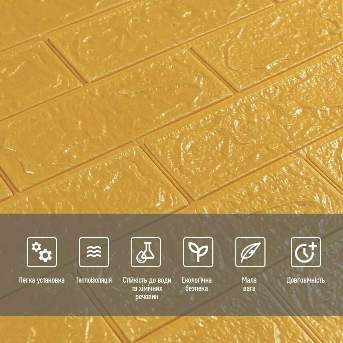 - Легкість монтажу: наявність клейового шару дозволяє встановити панелі без необхідності застосування додаткових матеріалів.