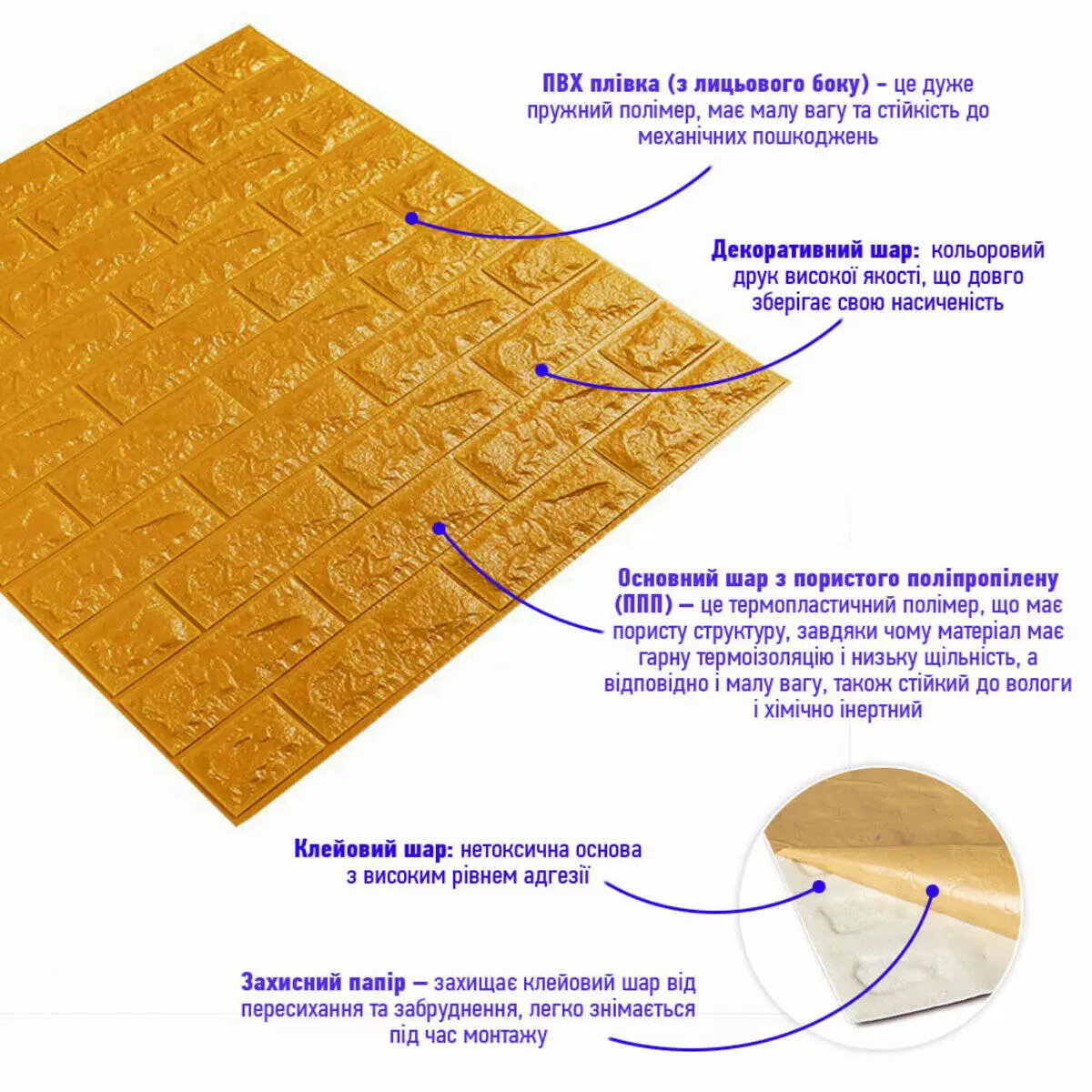 3D панель самоклеюча 700х770х7мм цегла Золотий (011-7) SW-00000052