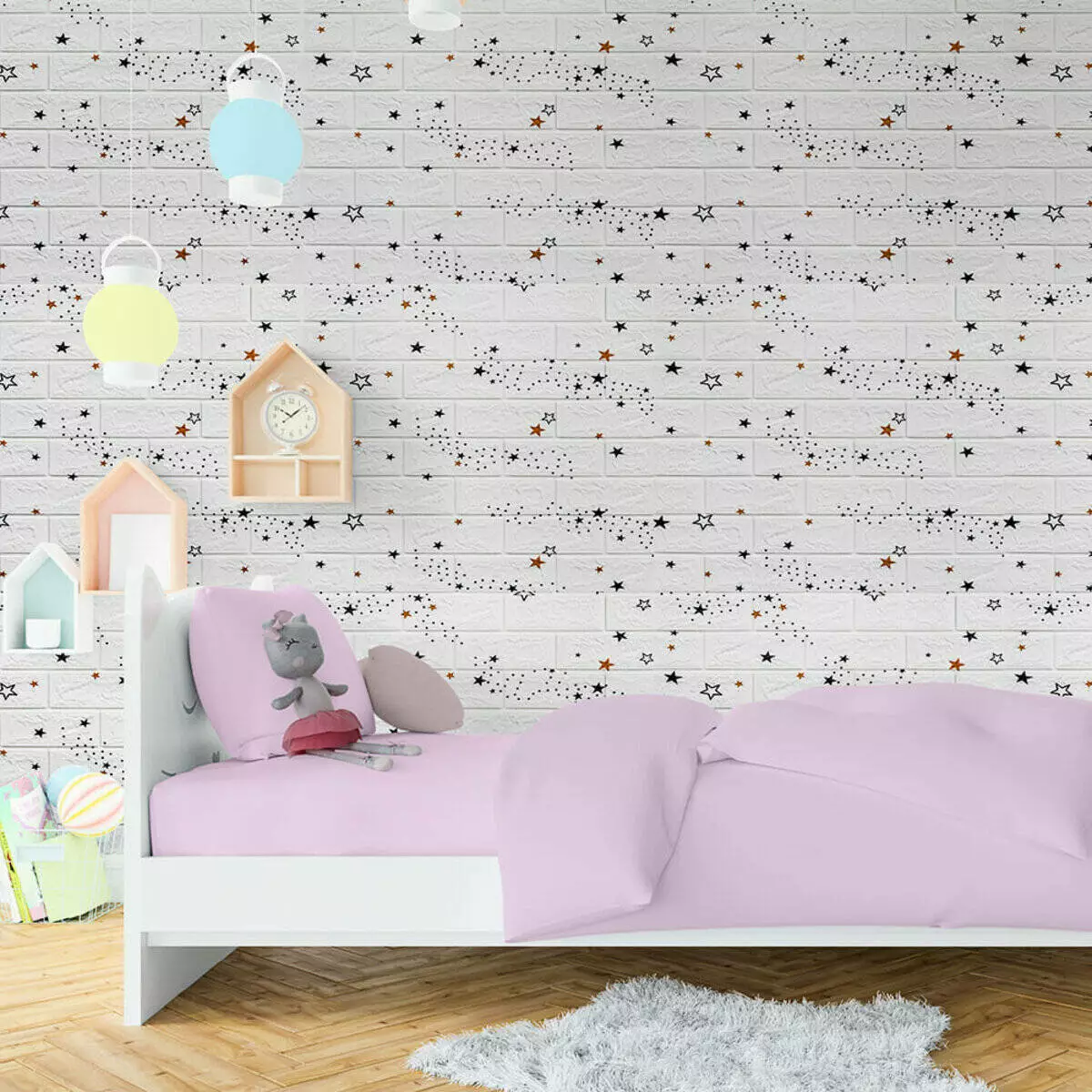 Декоративна 3D панель самоклейка 700х770х5мм Зірки (біла цегла) (021) SW-00000086