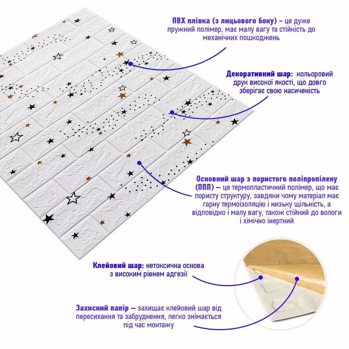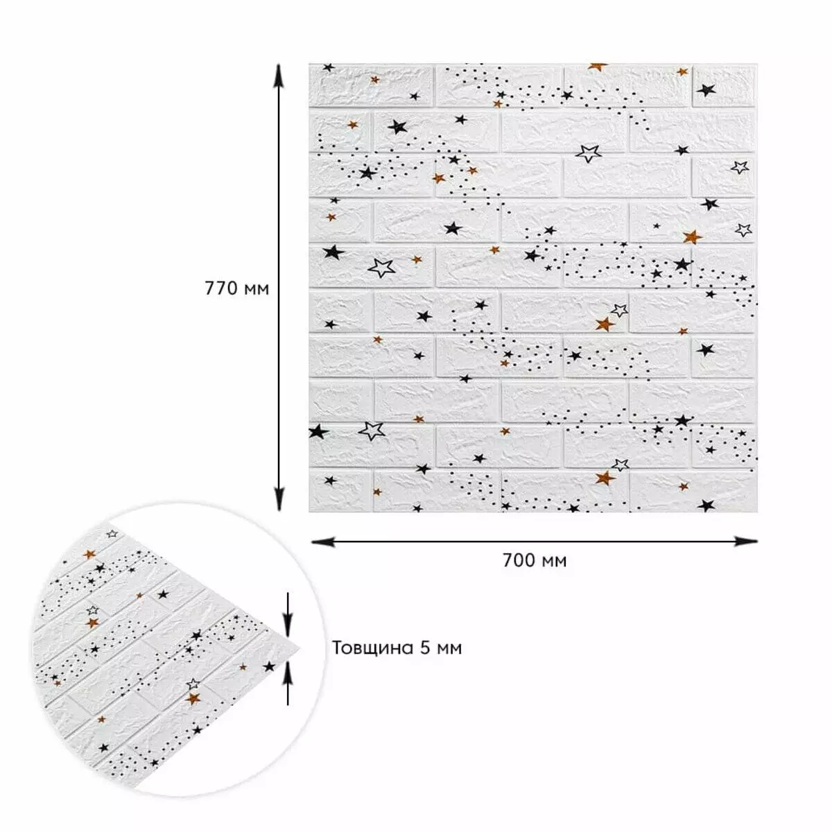 Декоративна 3D панель самоклейка під білу цеглу Зірки 700х770х5мм (021)