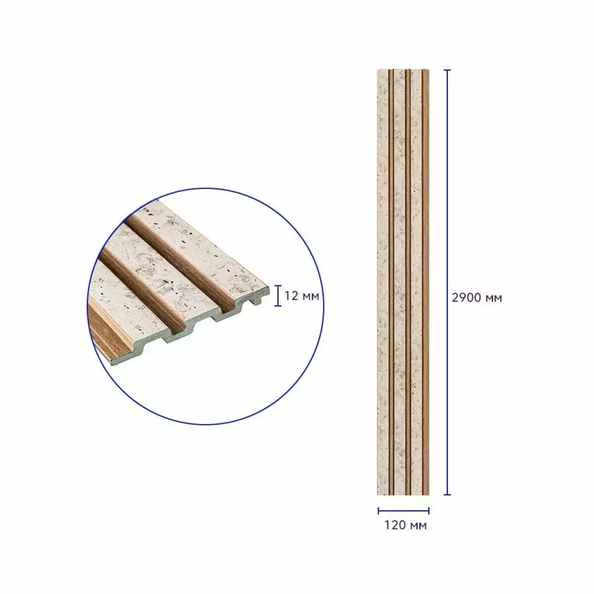 - Площа покриття: 120х2900х12 мм – 0,34 м², кількість на 1 м² – 3 одиниці.