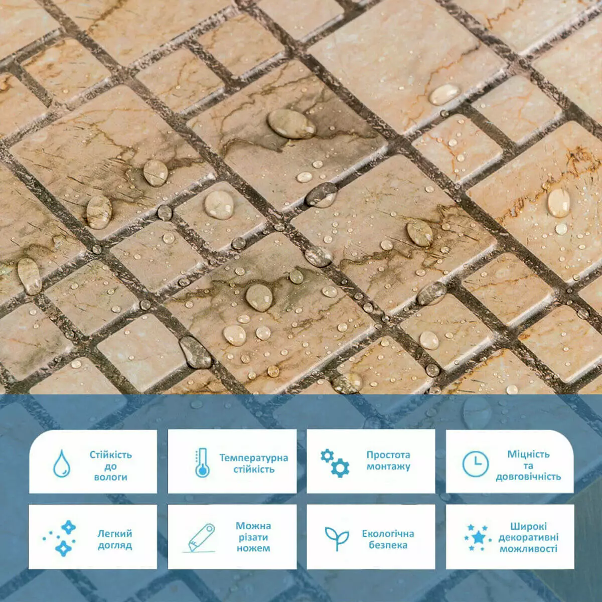 Панелі дуже прості у монтажі, практичні у використанні та довговічні. Для монтажу панелей Вам потрібен буде: клей для ПВХ, ножиці або монтажний ніж, рівень чи лінійка, скотч (для фіксації свіжих панелей).