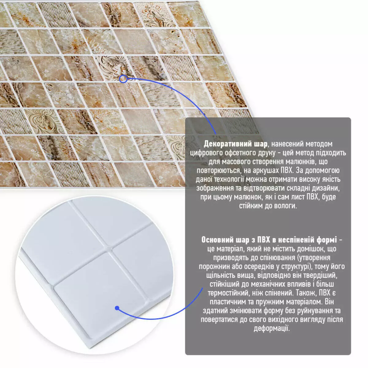 Розмір ПВХ панелі – 960ммх480мм. Товщина – 4 мм.