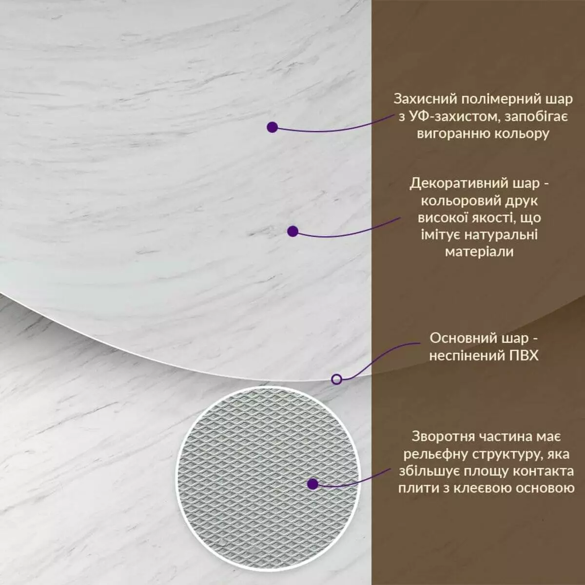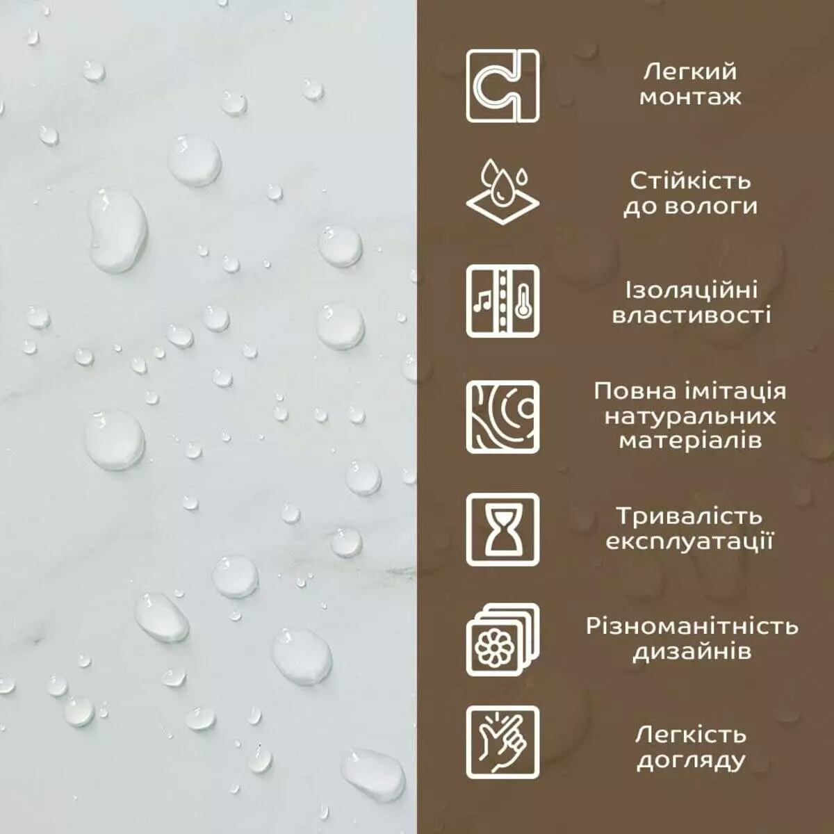 - Імітація натурального матеріалу (мармур, камінь)