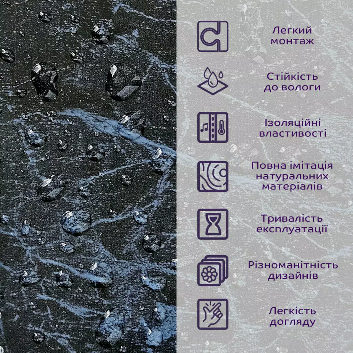- Імітація натурального матеріалу (мармур, камінь)