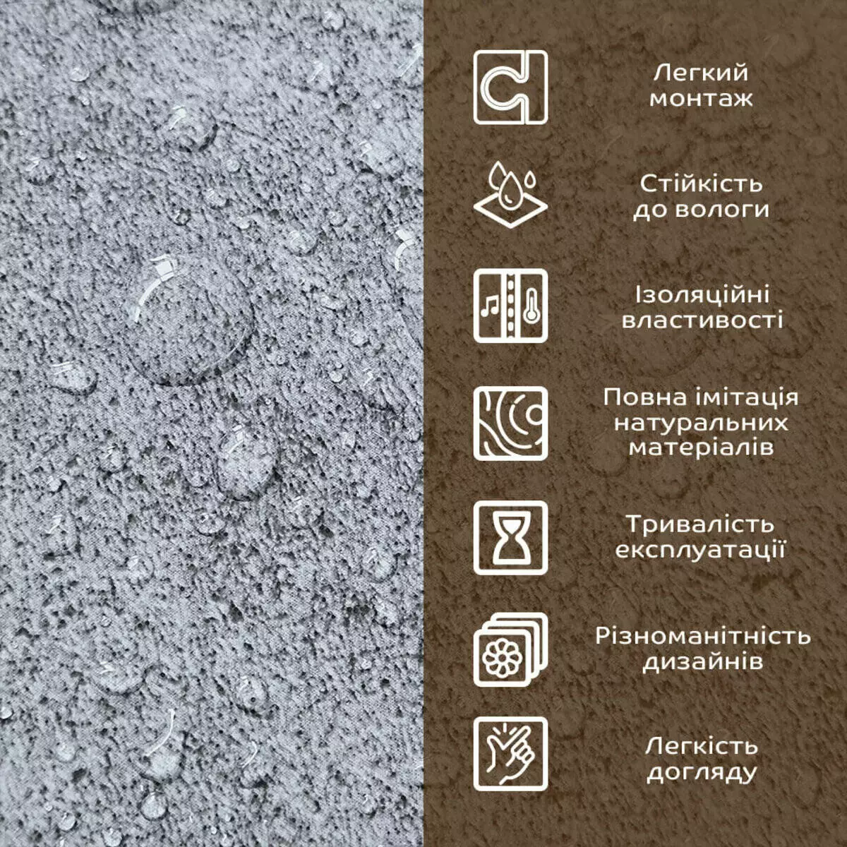 - Імітація натурального матеріалу (мармур, камінь)