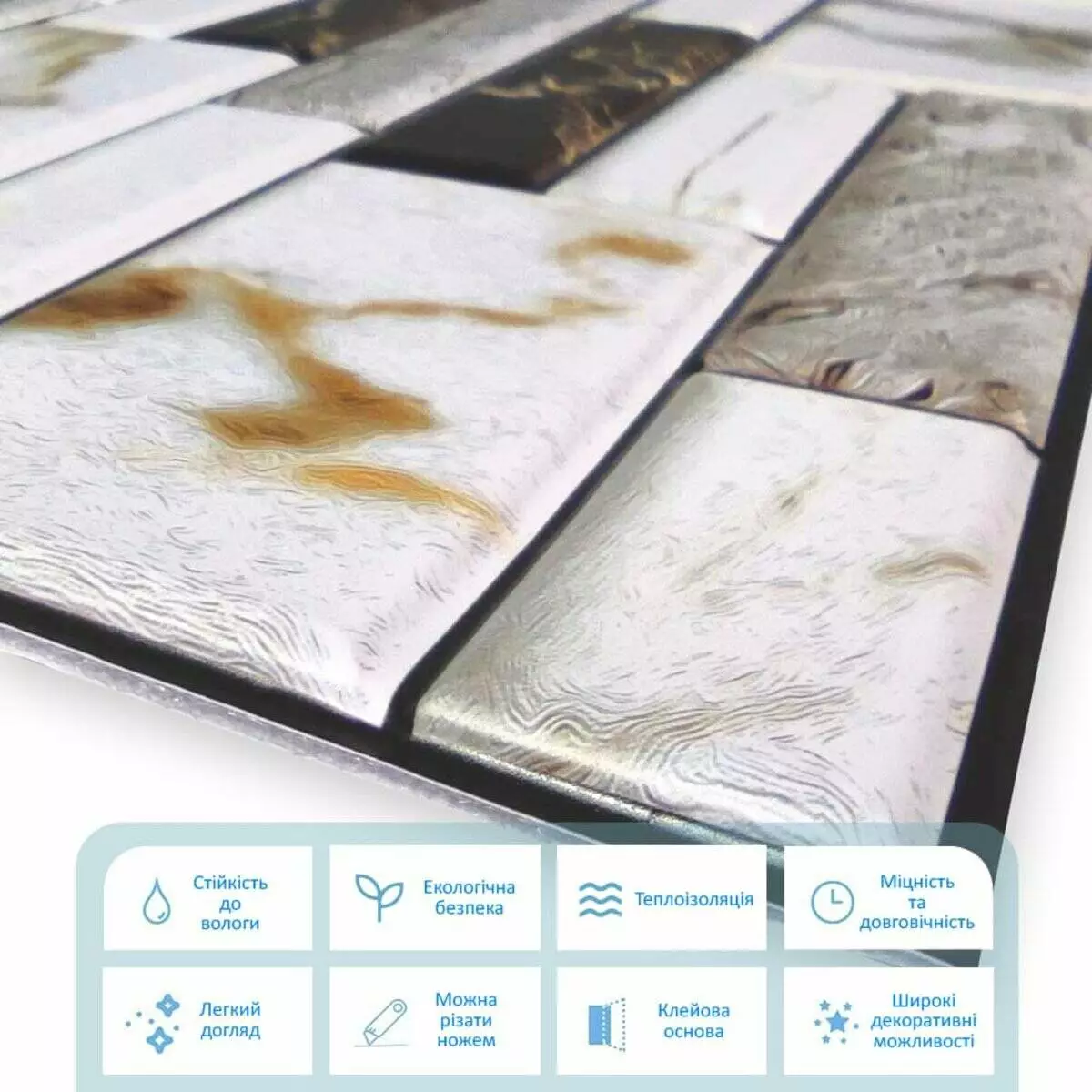 Самоклеючі декоративні панелі СПП - новинка у світі самоклейок. Це невеликі плитки із трендовим малюнком під натуральні матеріали. Прозорий захисний шар із поліуретану захищає покриття від стирання та механічних пошкоджень.