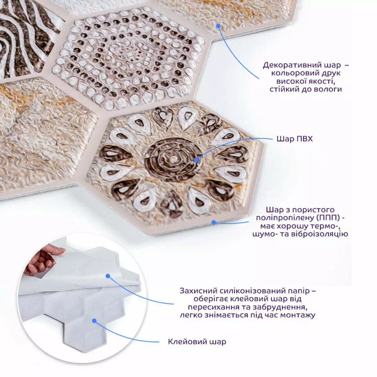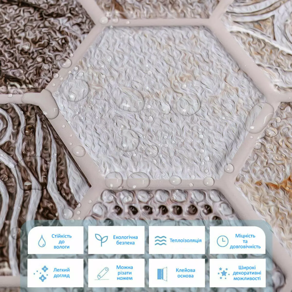 Самоклеючі декоративні панелі СПП - новинка у світі самоклейок. Це невеликі плитки із трендовим малюнком під натуральні матеріали. Прозорий захисний шар із поліуретану захищає покриття від стирання та механічних пошкоджень.