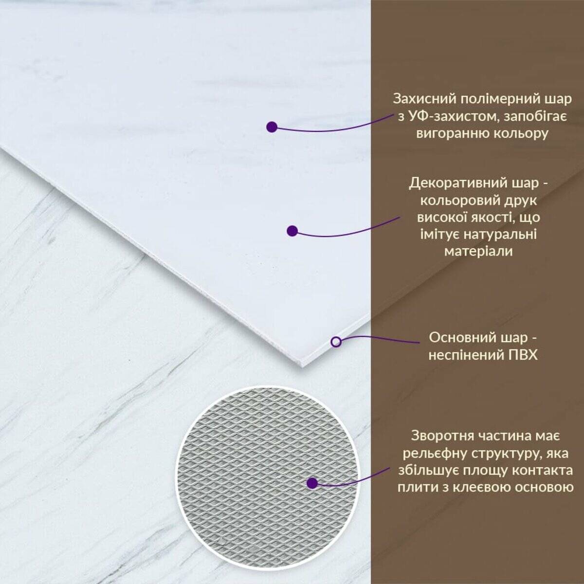 Розмір ПВХ плити - 600ммх1200мм. Товщина - 3 мм. Вага листа - 4,8кг