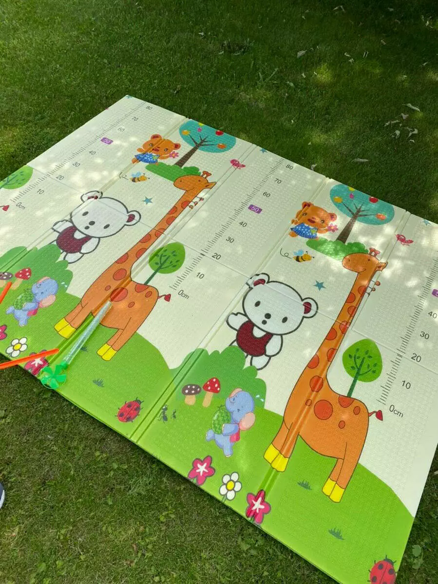 Дитячий складаний розвиваючий термо килимок "Ведмедик на велосипеді + Ростомір" 200х180х1см (248)