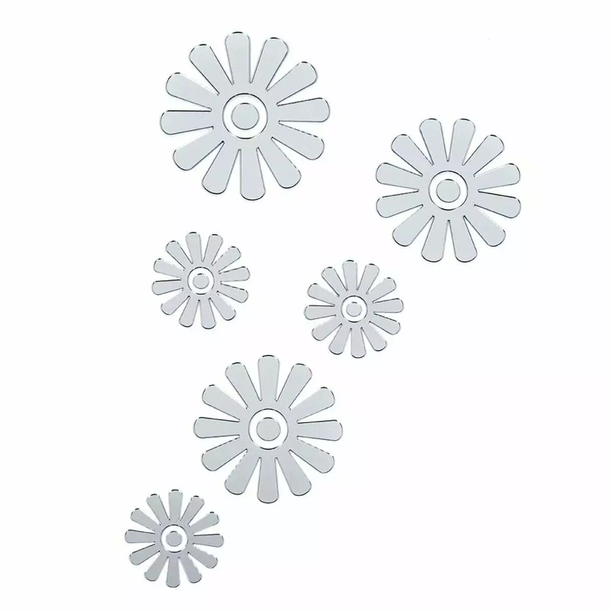 Дзеркальний декор акриловий самоклеючий Квіти срібло, 6шт (D) SW-00002519