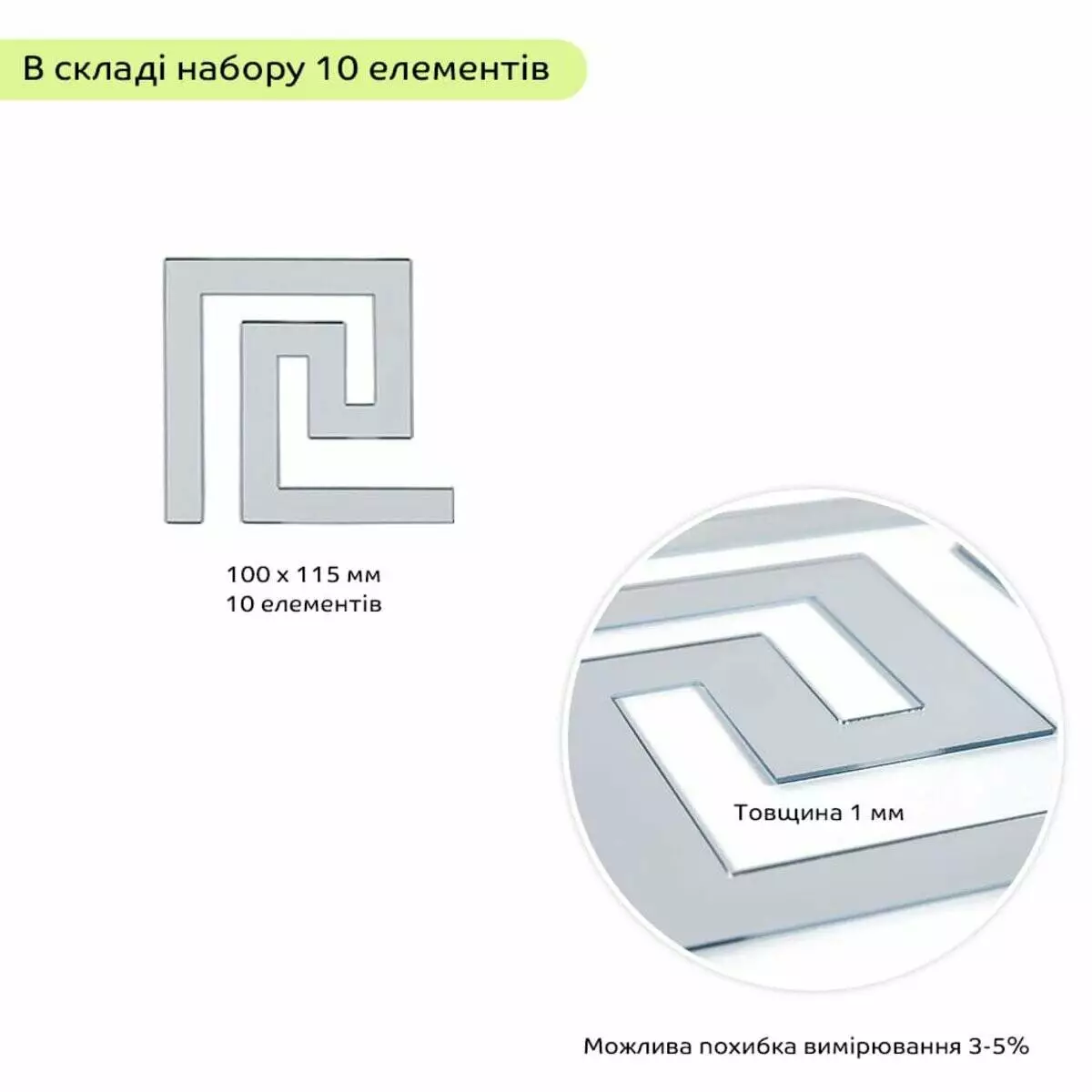- Монтажний патч: спінений двосторонній скотч, призначений для надійного закріплення легких декоративних елементів, забезпечує просте та міцне приклеювання акрилових наліпок до різних поверхонь.