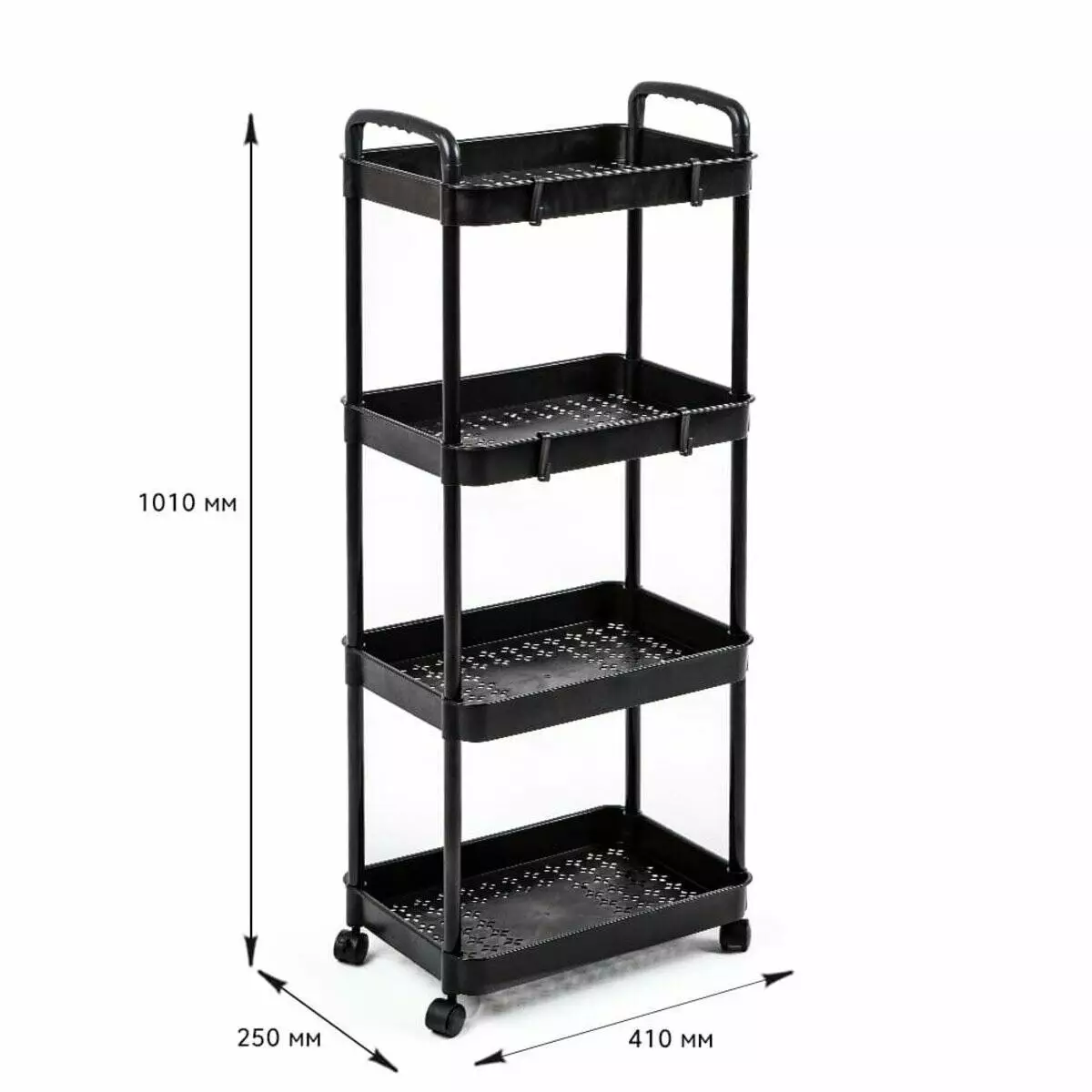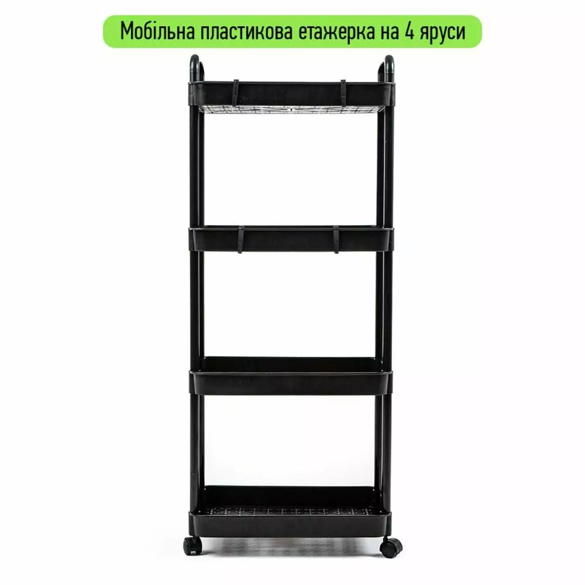 Етажерка мобільна чотириярусна універсальна пластикова 41х25х101см Чорна SW-00002108