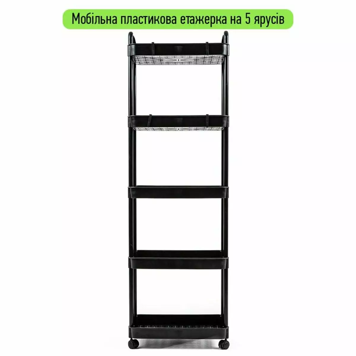 Етажерка мобільна п'ятиярусна універсальна пластикова 41х25х127см Чорна SW-00002109