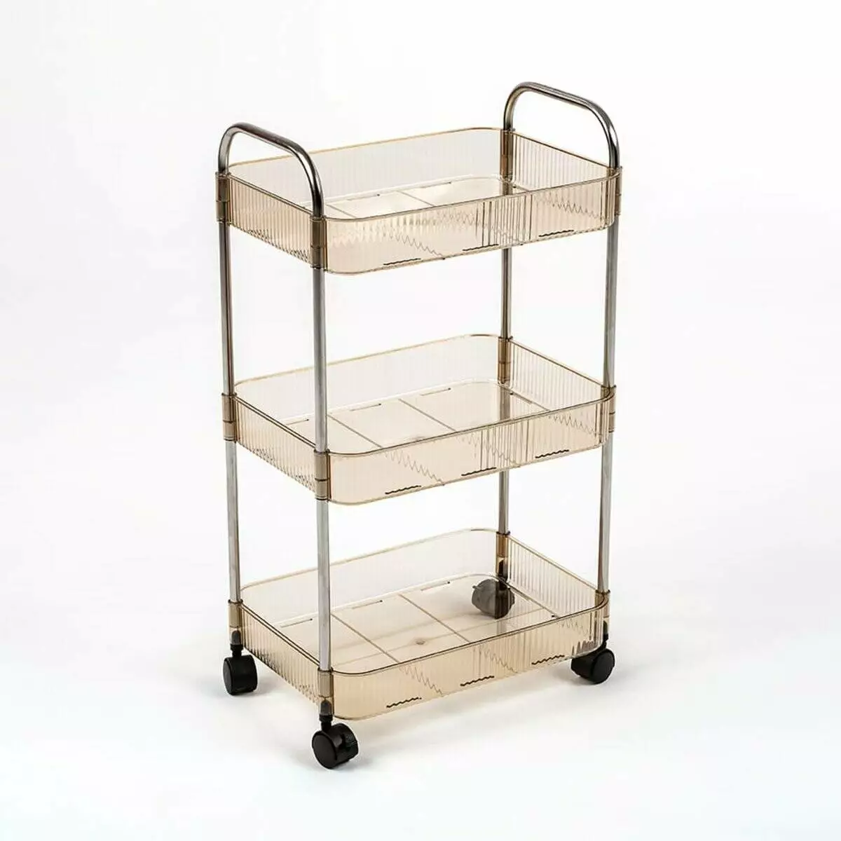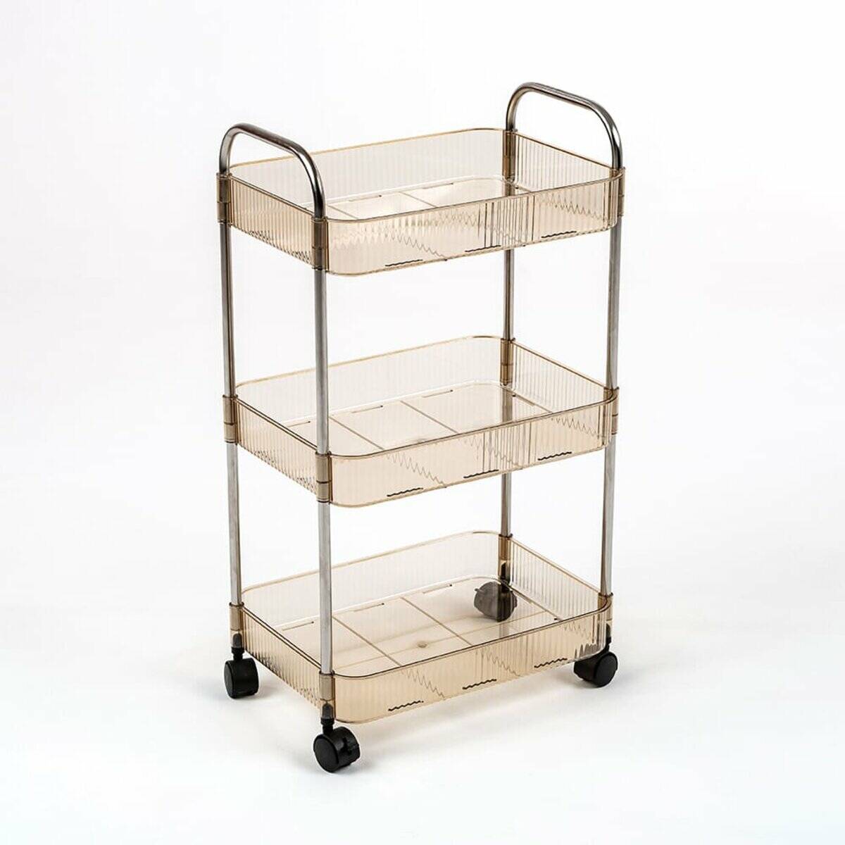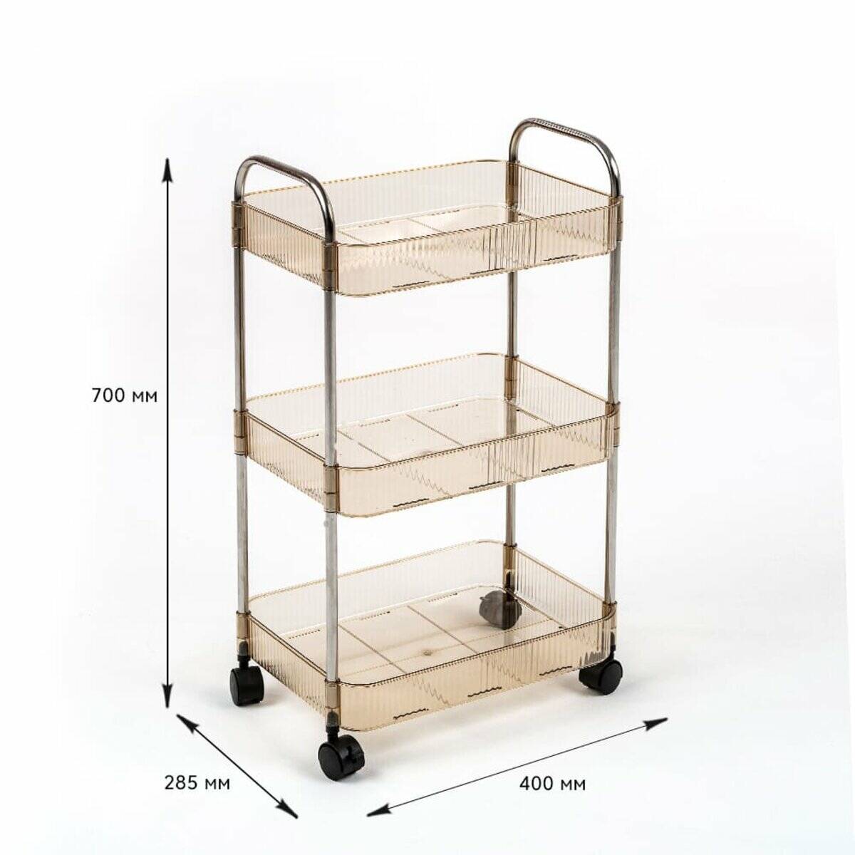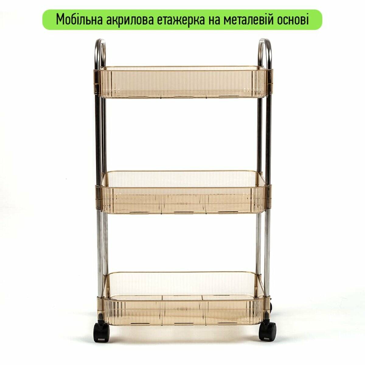 Етажерка мобільна триярусна універсальна з акрилу та металу 40х28,5х70с Бежева SW-00002111