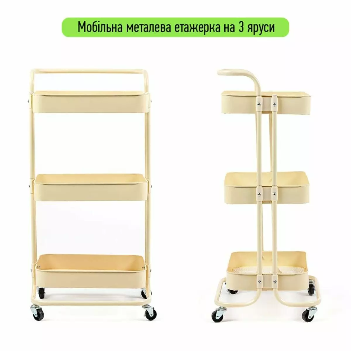 нашою триярусною етажеркою на колесах із зручною ручкою. Виконаний