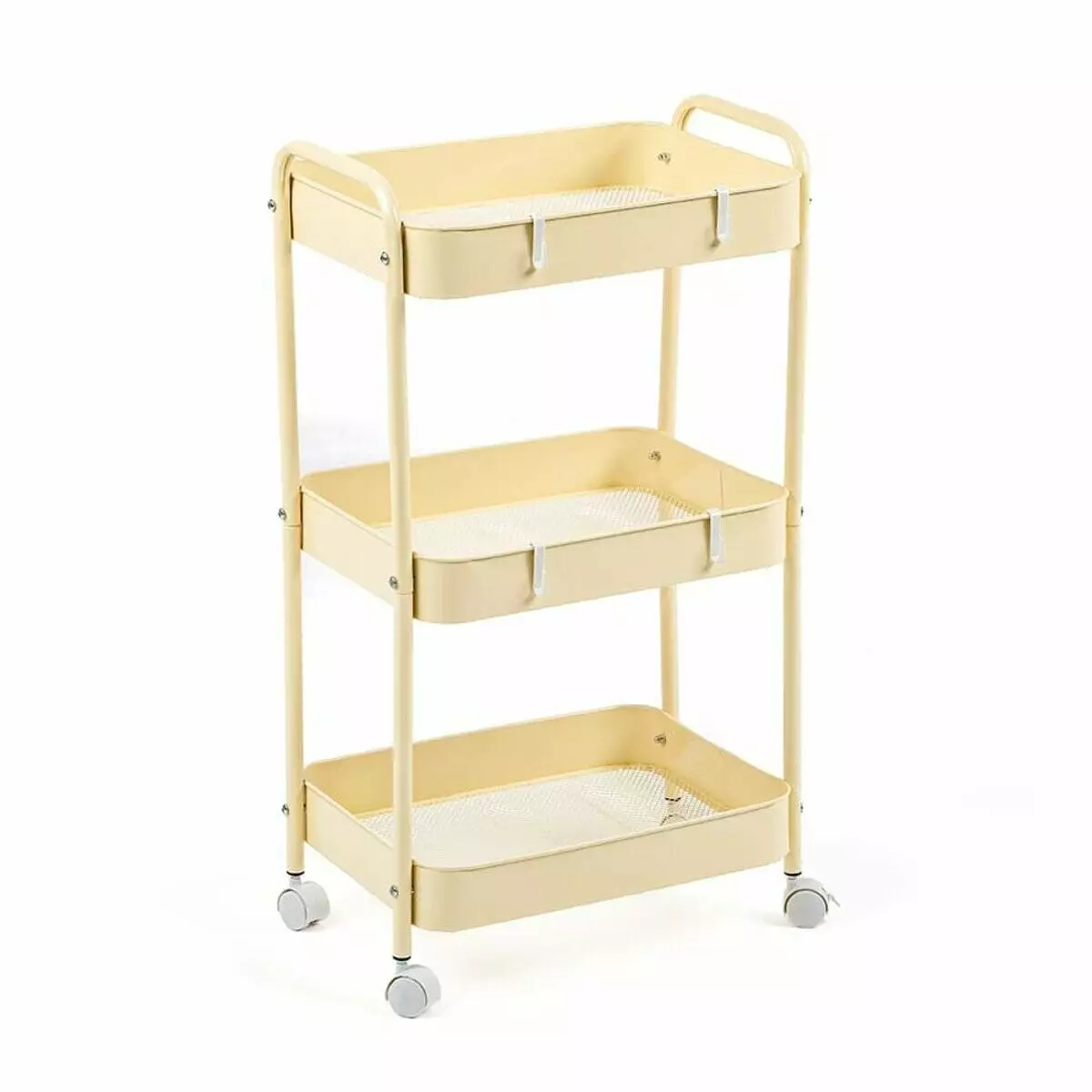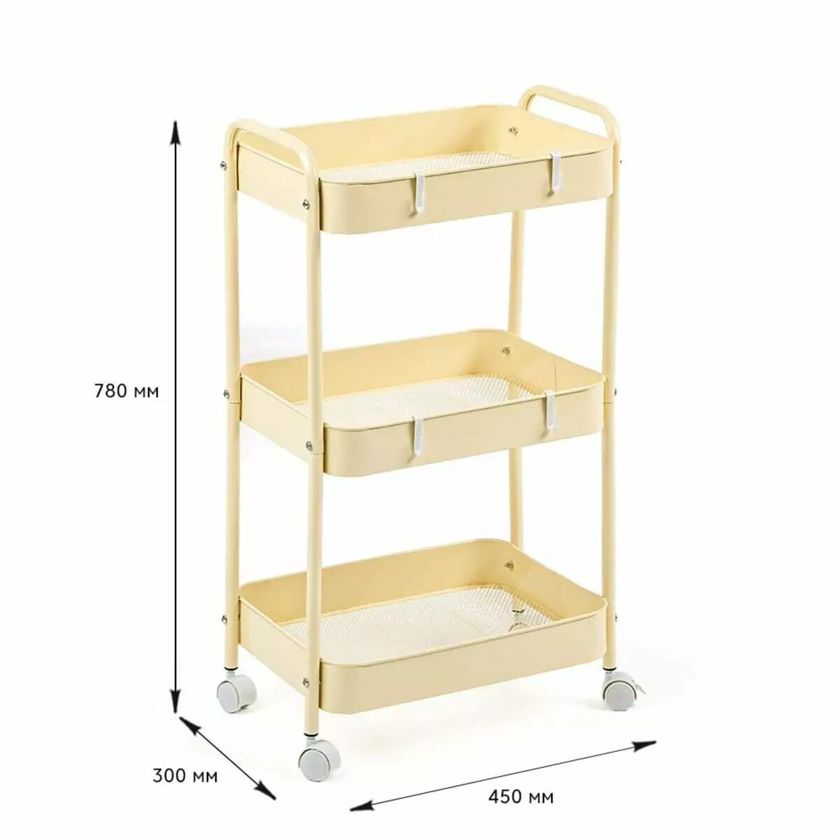 Етажерка мобільна триярусна универсальная з металу 45х30х78см Кремова SW-00002113