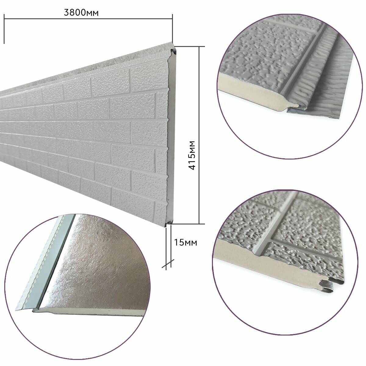 - Дизайн і кольори: панелі представлені в 6 варіантах, включаючи імітацію дерева та цегли, що дає можливість для створення різноманітного зовнішнього вигляду будівель.