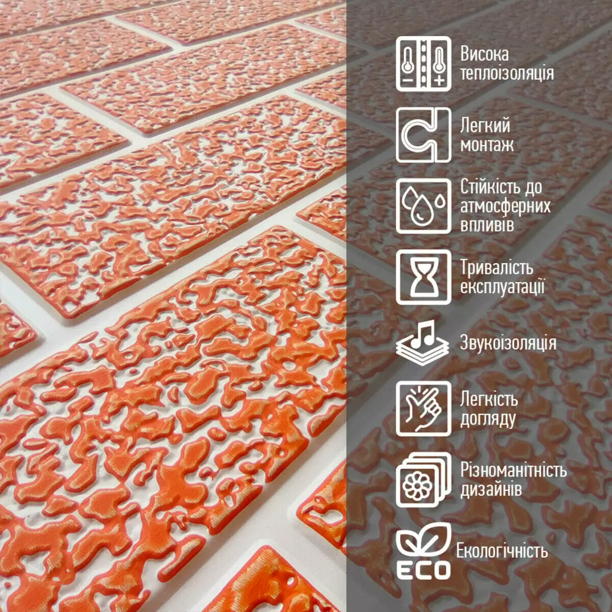 - Дизайн і кольори: панелі представлені в 6 варіантах, включаючи імітацію дерева та цегли, що дає можливість для створення різноманітного зовнішнього вигляду будівель.
