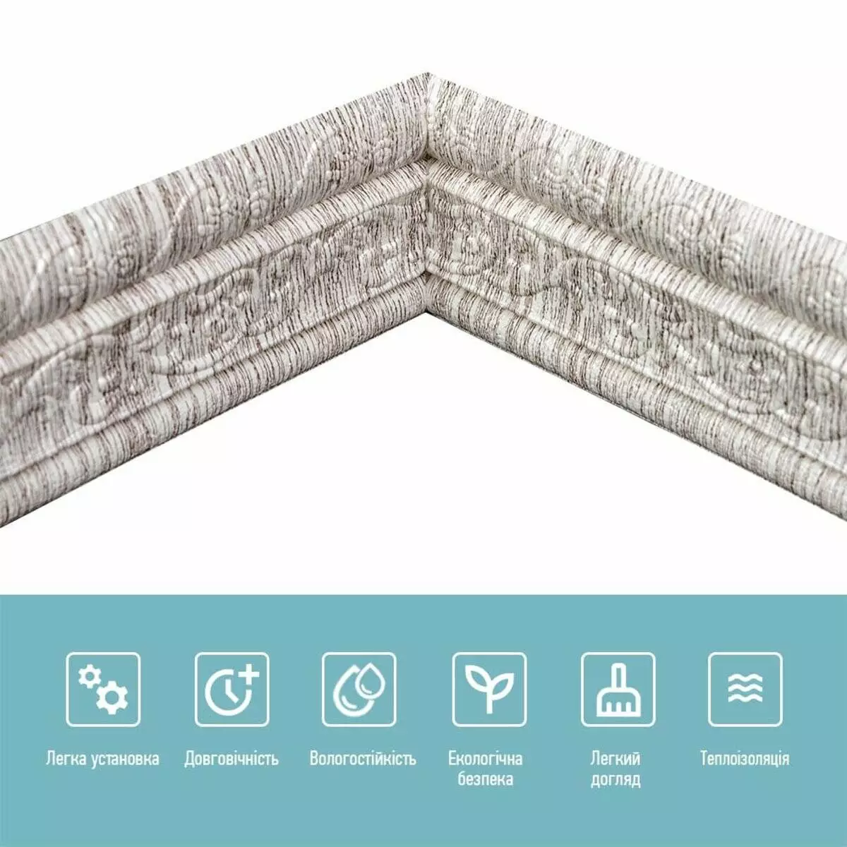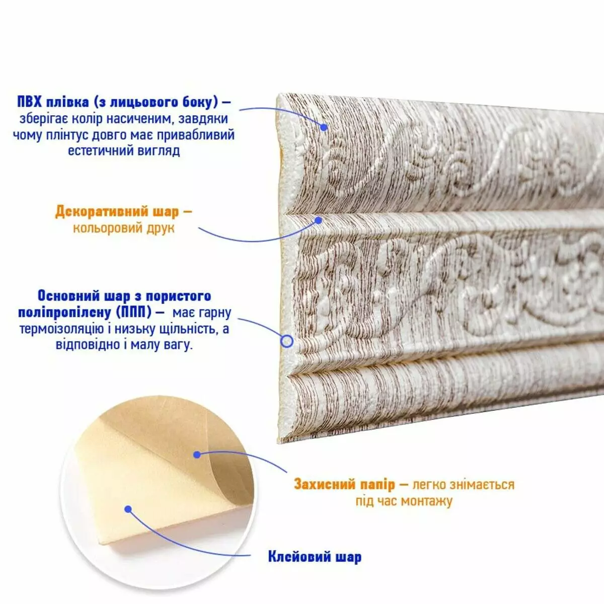 Плінтус ППППлінтус з пористого поліпропілену - декоративний елемент, який встановлюється вздовж нижньої частини стіни для прикриття стику між стіною та підлогою. Завдяки клейовій основі він легко монтується, без застосування додаткових матеріалів і є ідеальним доповненням у різних інтер’єрних рішеннях.