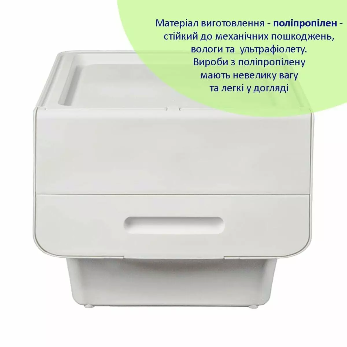 - Легкість у догляді: Поліпропілен легко очищується, не вбирає бруд і не утримує запахи, що робить ці контейнери ідеальними для зберігання продуктів, інструментів або інших предметів, що потребують регулярного очищення.