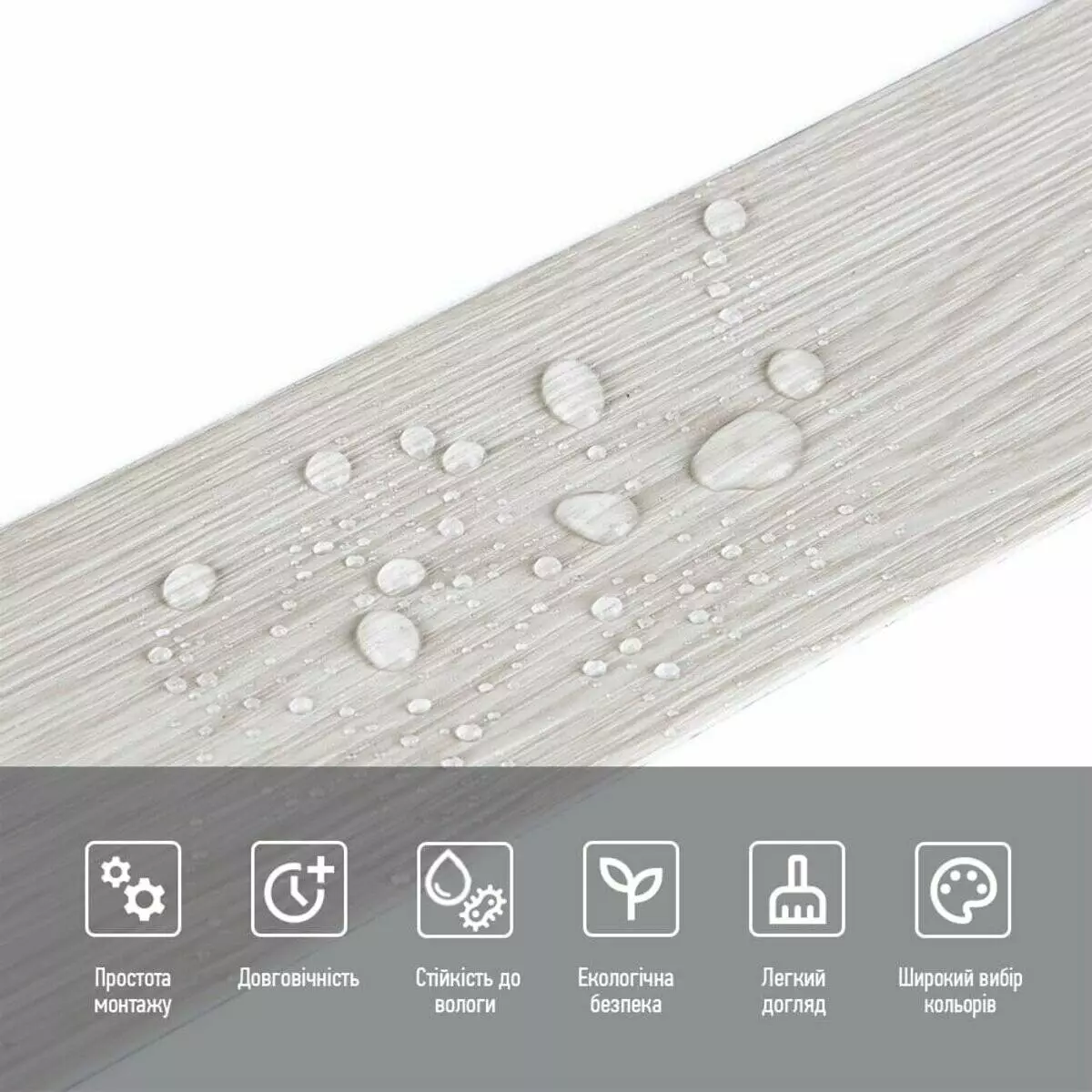 - Екологічна безпека: вінілові молдинги виготовляють з відновлювальних ресурсів, а сам матеріал безпечний для здоров'я та навколишнього середовища.