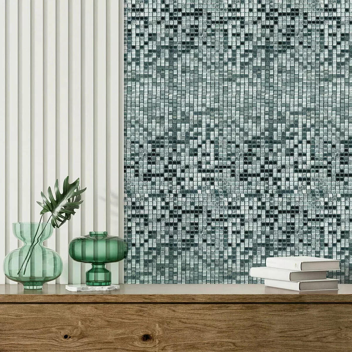 • Водостійкість та жаростійкість: Скляна мозаїка на клейовій основі стійка до впливу вологи та температурних перепадів, що робить її ідеальним вибором для ванних кімнат, кухонь і душових кабін. Покриття запобігає утворенню плісняви, забезпечуючи довговічність та безпеку використання у вологих приміщеннях.