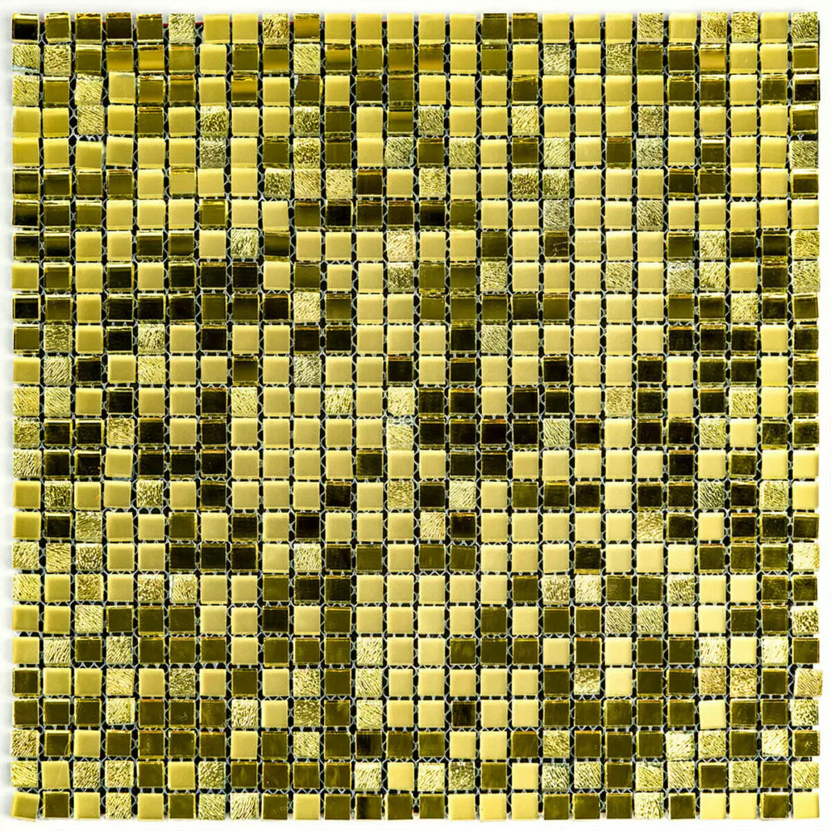 • Сітка. Кожен шматочок мозаїки, прикріплений до основи з полімерної або скловолоконної сітки що дозволяє легко монтувати всю плитку як цілісне покриття.