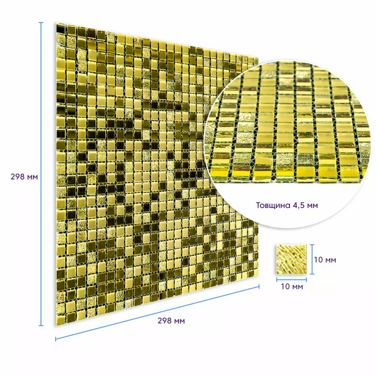 Мозаїка дзеркальна 298х298х4,5мм Золото SW-00002372