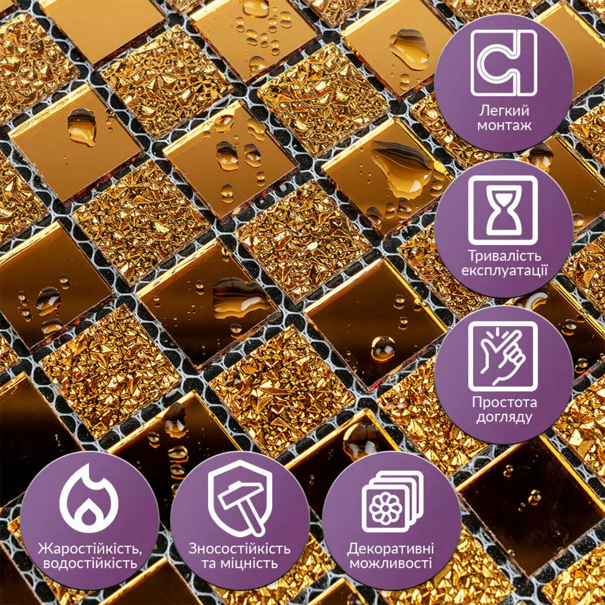 яскравих акцентів в інтер’єрі. Завдяки клейовій основі, мозаїка