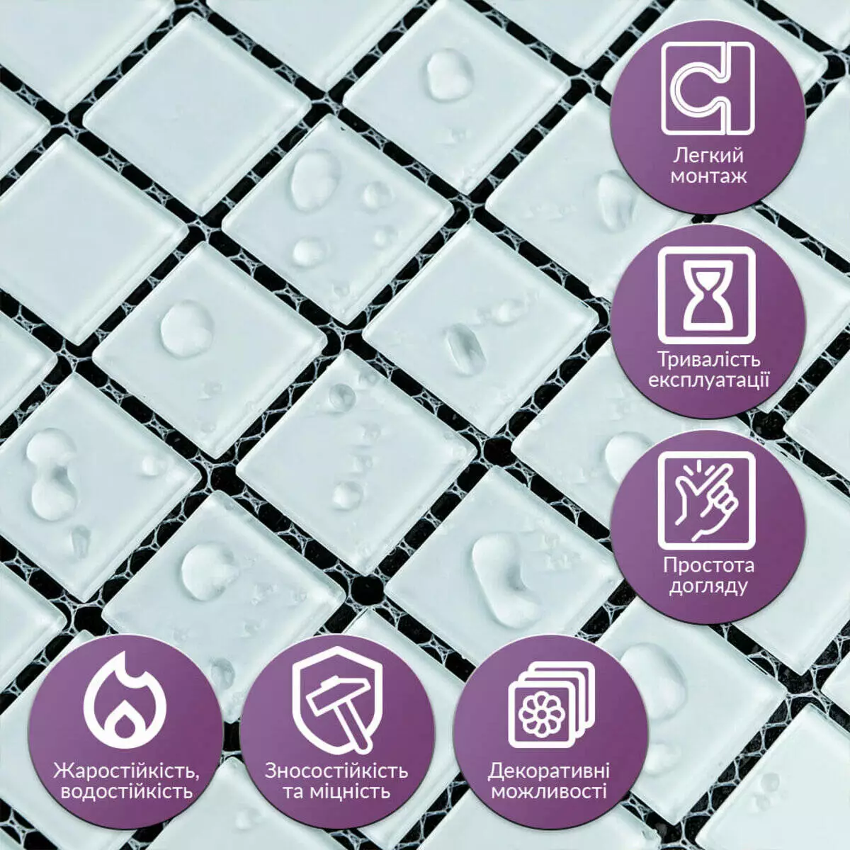 Мозаїка з декоративного скла 298х298х4,5мм Біла SW-00002364