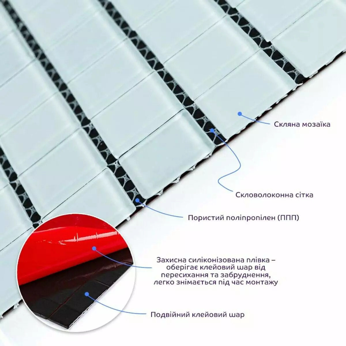 • Декоративні можливості: скляна плитка доступна в різних кольорах та дизайнах. Це дозволяє вибрати плитку, яка найкраще підійде до інтер'єру вашого приміщення. Якісна альтернатива кахлю чи керамічній плитці.