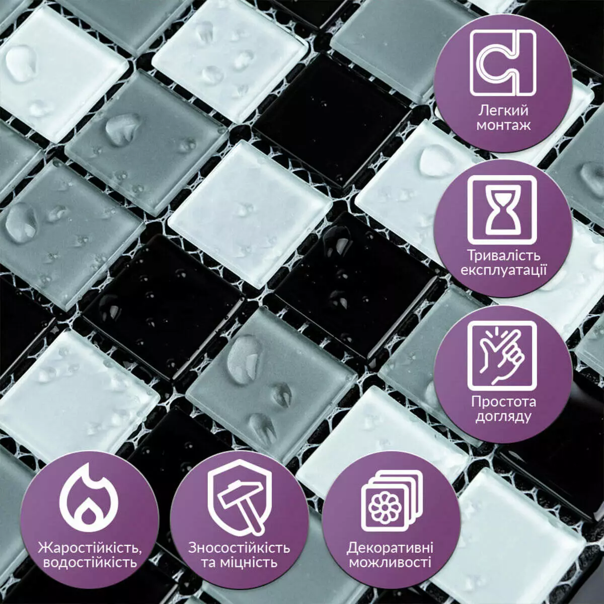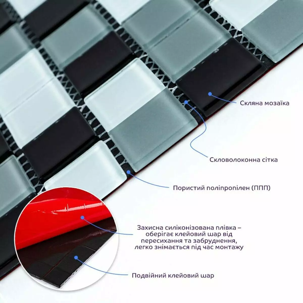 Мозаїка з декоративного скла 298х298х4,5мм Чорно-сіра SW-00002369