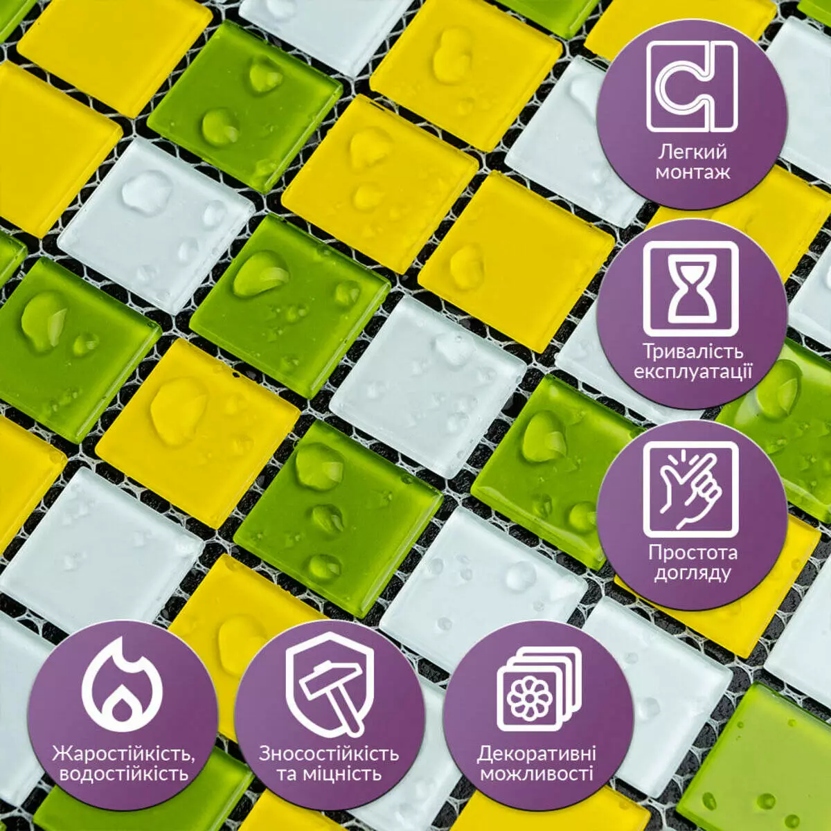 Мозаїка з декоративного скла 298х298х4,5мм Жовто-зелена SW-00002362