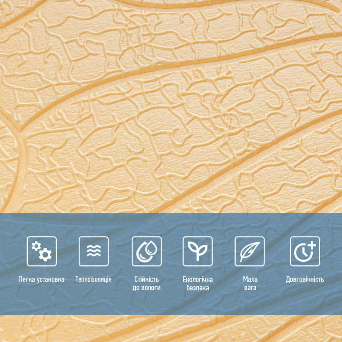 - Легкість монтажу: наявність клейового шару дозволяє встановити панелі без необхідності застосування додаткових матеріалів.