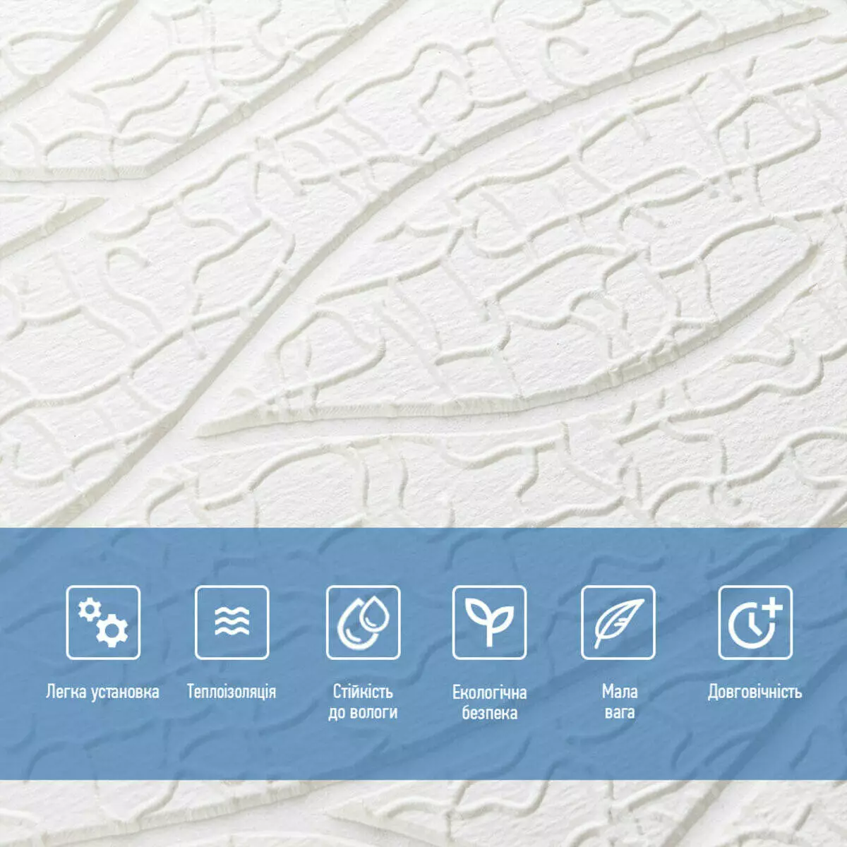 - Легкість монтажу: наявність клейового шару дозволяє встановити панелі без необхідності застосування додаткових матеріалів.
