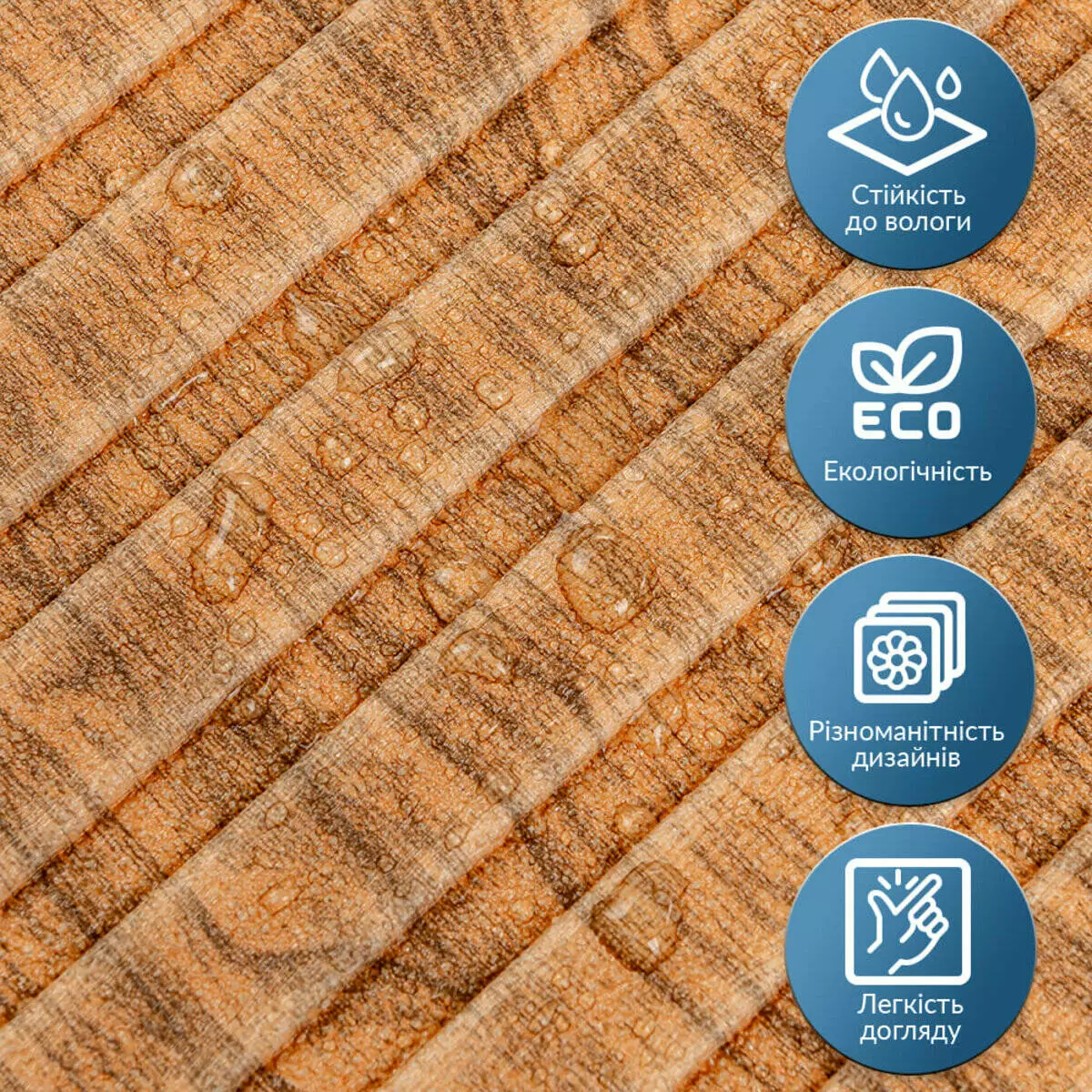 - Декоративний шар: кольоровий друк високої якості, що довго зберігає свою насиченість.