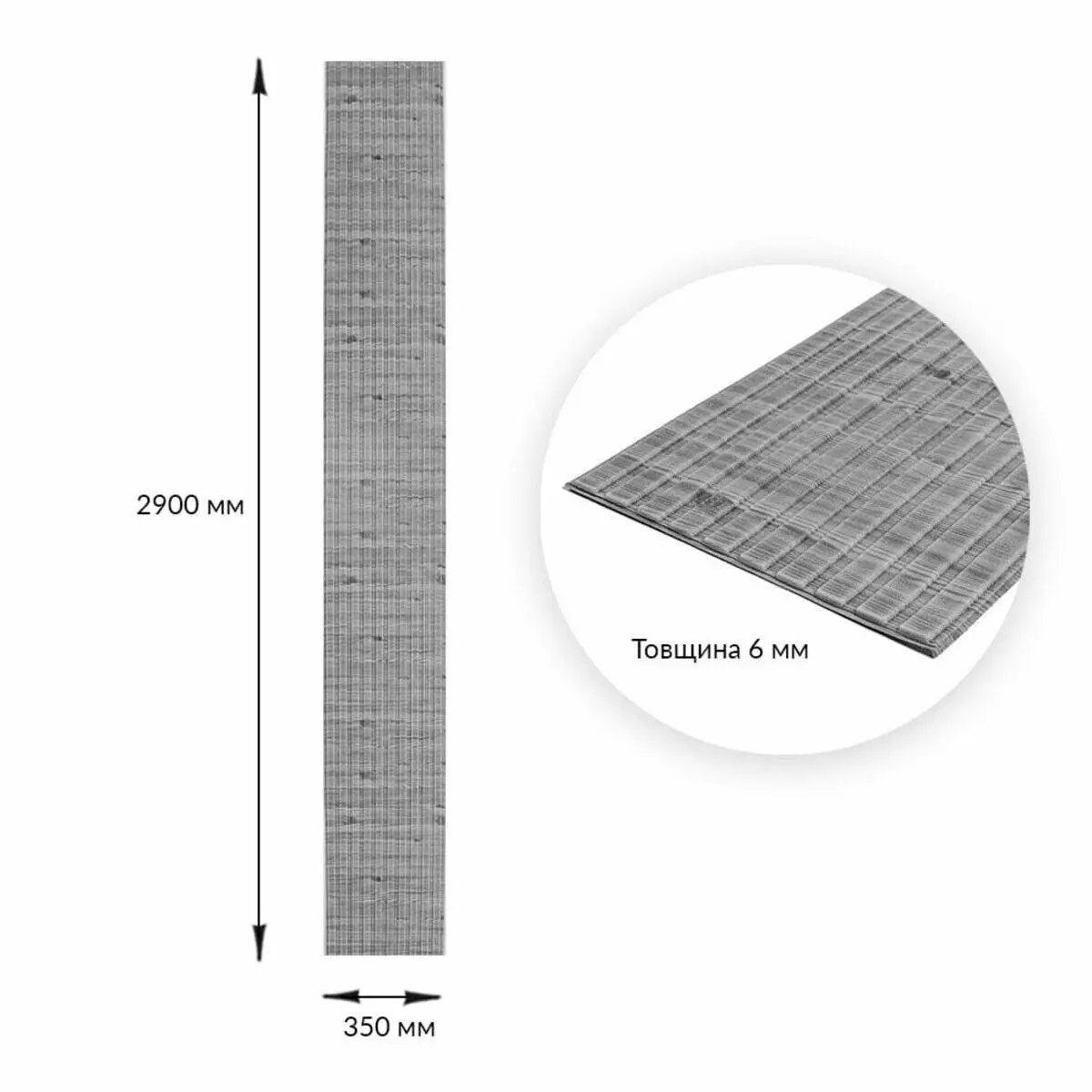 - Розмір: 2900*350*6мм